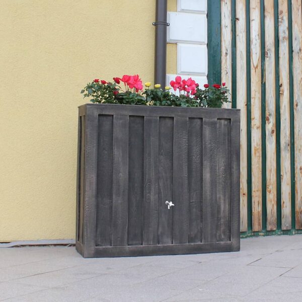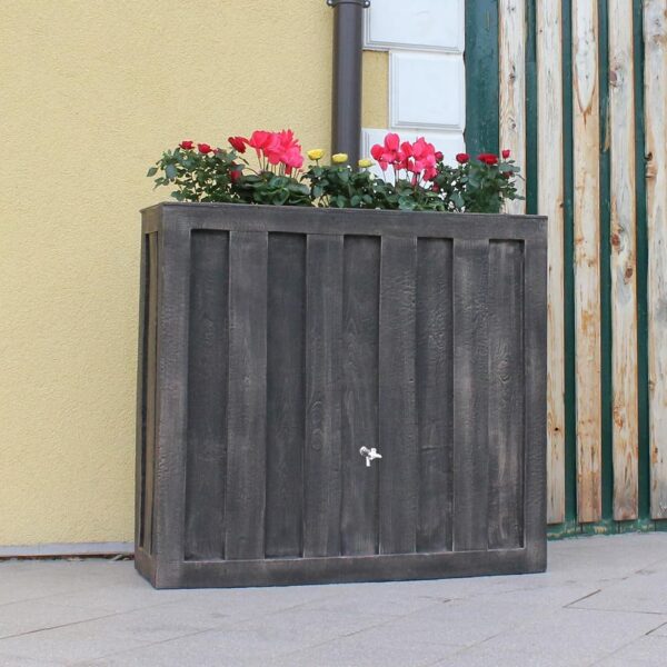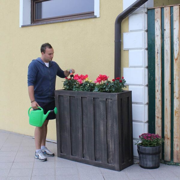 Kiváló minőségű UV-stabil és időjárásálló műanyag, elképesztő részletkidolgozottság jellemzi a felületét. Látványos, dekoratív módja az esővízgyűjtésnek. Helytakarékos tartály, igen megnyerő külsővel és nagy tárolókapacitással. Beépített virágültetővel és további célszerű lehetőségekkel.
