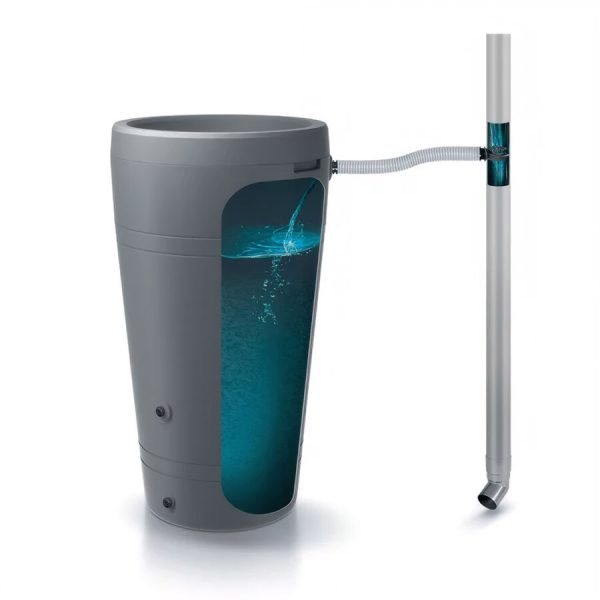 Az esőlopó tömlőcsatlakozó feladata az esővíz elvezetése az ereszcsatornából közvetlenül az esővízgyűjtő tartályba. A tömlőnek köszönhetően gyorsan megtölthető a tartály esővízzel.