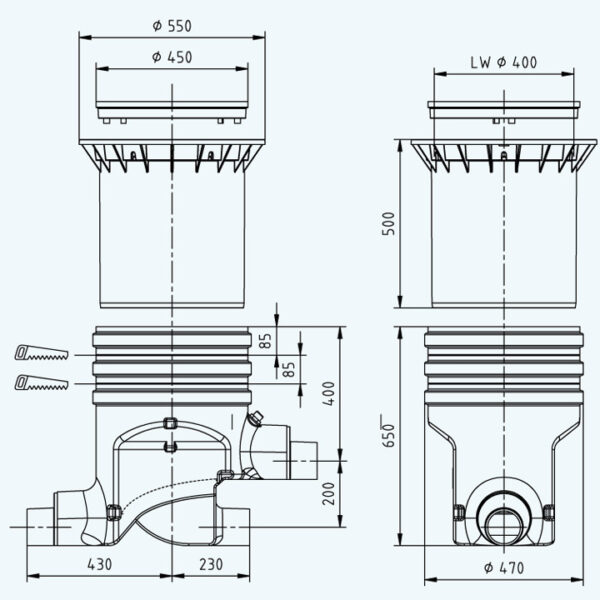 - Maximális tetőfelület DN 150 rákötéssel : 750 m²