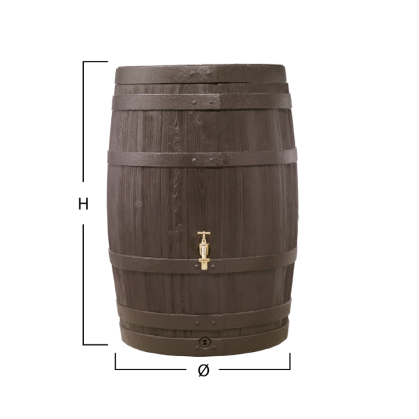 Barrica hordó formájú esővízgyűjtő tartály, 260 l, barna