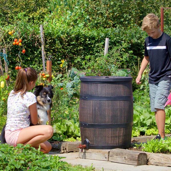 Az esővízgyűjtő megjelenése igen megnyerő, hiszen a fából készült társaira hasonlító hordók külső jegyeit hordozza, gusztusos, látványos kivitelben. Kiváló minőségű UV-stabil és időjárásálló műanyag.