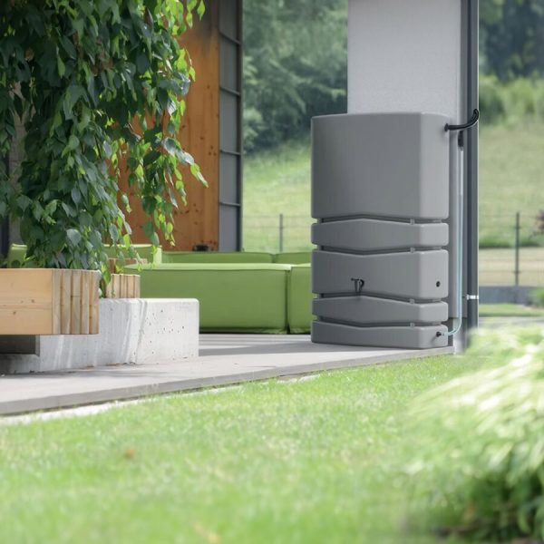 Az esővízgyűjtő tartály egyedi megjelenése és tökéletes kidolgozása lehetővé teszi, hogy egy közönséges tartályt kerti díszlé alakítson. A tartály három 3/4″-os csatlakozóval van felszerelve, amelyek dugóval vannak lezárva.