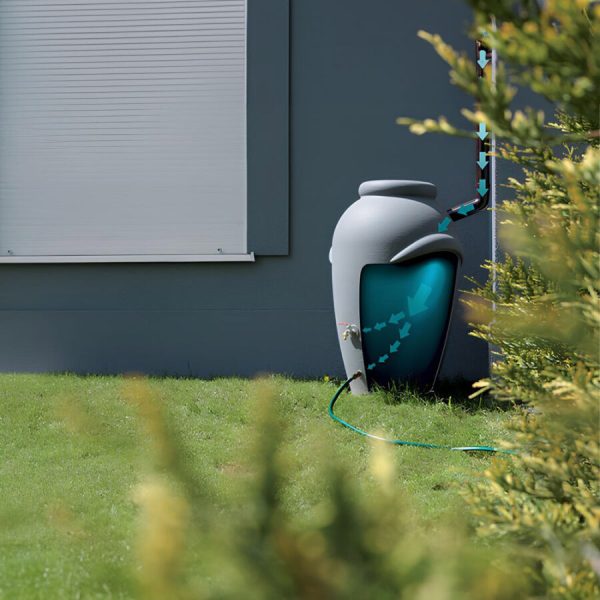 Az Aquacan, szürke színű esővízgyűjtő tartály, mely egy óriási vázára vagy egy ókori amforára hasonlít. A tartályon lévő fedél védi a hordó tartalmát a szennyeződésektől. A fedél alatt egy virágtartó van elhelyezve, melybe beleültetheti a kedvenc virágát. A fedél kialakítása lehetővé teszi két ereszcsatorna rögzítését, ezen kívül a hordón található két menetes furattal ellátott leeresztő lyuk, amelyhez leeresztő csap vagy kerti tömlő is rögzíthető