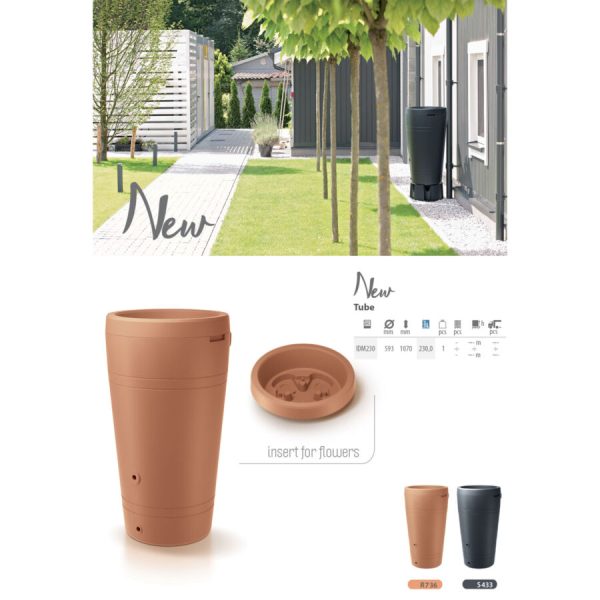 A Tube esővízgyűjtő tartály 230 l esővizet gyújt össze, amelyet aztán felhasználhat a dísznövény, zöldség és gyümölcs ágyások öntözésére a kertjében. A többfunkciós fedél megvédi a hordó tartalmát a szennyeződésektől, mint például a levelek, virágpor vagy por. Ráadásul a felső részére elültetheti a kedvenc növényét. A fedélben lévő virág a kert díszévé válik.