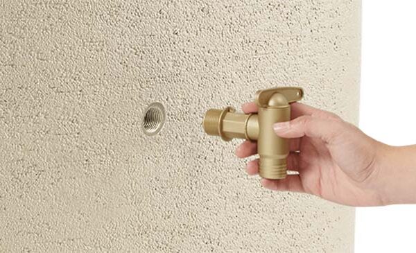 - Két 19 mm-es (¾ „) menetes csatlakozással a vízkivételezéshez – univerzális tömlőkészlet csatlakoztatható a maradék vízkivételezéshez, vagy a víz leengedéséhez fagyos időszakban