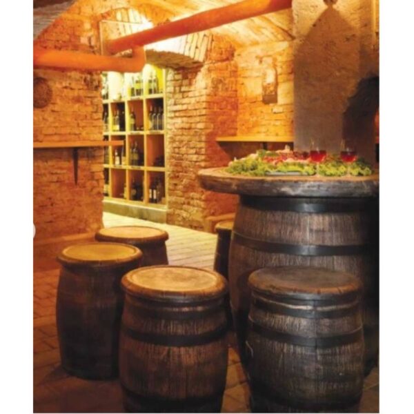 Szép kidolgozású, fahatású műanyag asztal. Igényes, erős műanyagból készült. Vezető tagja a pincebútor termékcsaládnak, Igényes kiegészítője lehet pincészeteknek, éttermeknek, rusztikus kerteknek, teraszoknak. Természetközeli megjelenés, könnyű, kezelést nem igénylő darab. Az asztal alsó része feltölthető homokkal vagy vízzel, ezzel biztosítható az asztal stabilitása. Ha az asztalt el kell vinni, a benne lévő vizet vagy homokot egyszerűen ki lehet engedni az alján lévő csapon keresztül, hogy könnyen szállítható legyen. Az asztallap letekerhető az alsó részről, ami szintén segíti az egyszerű szállítást.