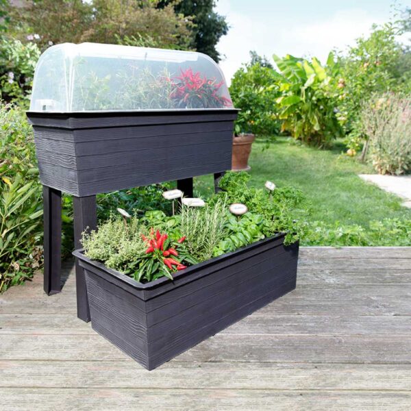 - UV-stabil és időjárásálló. Az emelt ágy ki van téve az időjárásnak és a napfénynek. Az ezekhez a feltételekhez igazított anyagok biztosítják a hosszan tartó jó megjelenést.